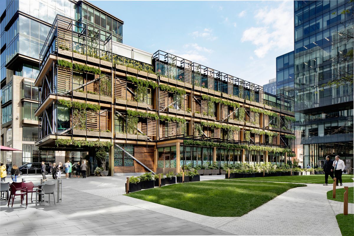生機蓬勃的植披,攀附於鋼架之上,將整棟建築外觀妝點得綠意盎然,宛如城市綠洲般,軟化了四周高樓成群的冰冷線條,為曼徹斯特居民們,提供了一處放鬆心靈的悠閒場域,這便是建築和自然的連結,也在無形之中強化了人與建築間的巧妙聯繫。