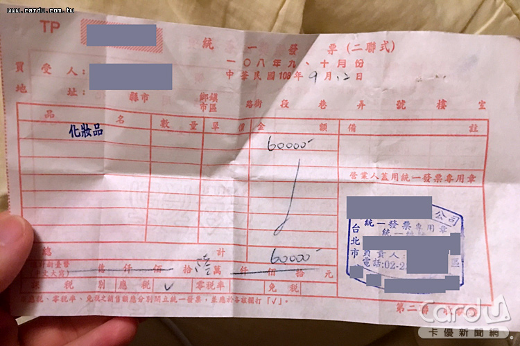 SPA會館業者為使女大生有「無壓力輕鬆付」的錯覺,以「無卡分36期」一期僅須付1,667元的話術行銷,事後女大生欲依課堂數比例解約退費,才驚覺以為是買瘦身美容課程,發票項目卻記載「化妝品」,發票還是由另一家不同登記地址的B公司所開立。