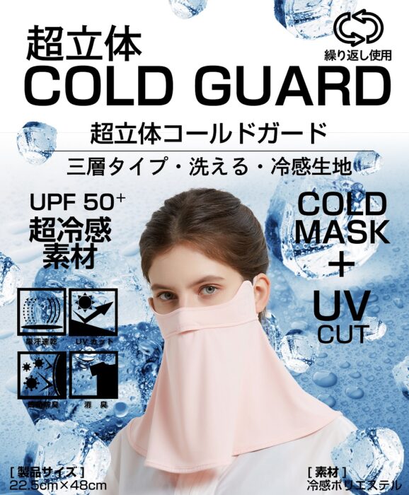 日本Galleria公司先前推出冷感口罩「COLD MASK」引起廣泛迴響,最新商品「超立體COLD GUARD」將舒適的冷感材質延伸到脖子,打造出適合在夏日外出的面罩式口罩,擁有UPF50+高防曬係數,耳朵綁帶也能做調整,不用再擔心戴久會痛了。