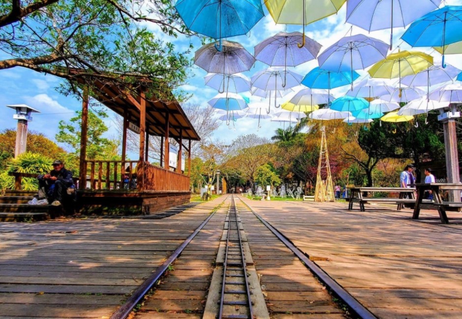 在合興愛情車站,有一句應景的撩妹用語「有沒有一班車,可以直達你的心裡?」坐上這台等比例縮小的火車,搭配上令人心動的文案,是不是有戀愛的感覺了呢?如果你不喜歡遊樂設施,這邊也有非常著名的「雨傘景點」,絕美的意境加上可愛的火車鐵軌,讓你怎麼拍都好看!