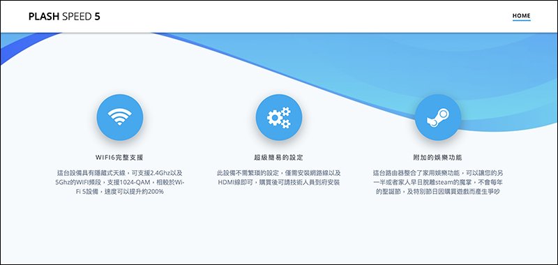 除此之外,也有網友甚至製作了 Plash Speed 5 的商品介紹頁面,而且介紹內容看似相當「正經」。例如, Plash Speed 5 完整支援 WIFI6 規格,具備有隱藏式天線可支援 2.4Ghz 以及 5Ghz 的 WIFI 頻段,支援 1024-QAM ,相較於Wi- Fi 5設備,速度可以提升約200%。另外,超級簡單地設定過程,僅需安裝網路線以及 HDMI 線即可,購買後可請技術人員到府安裝。這台路由器整合了家用娛樂功能,可以讓您的另一半或者家人早日脫離 steam 的魔掌,不會每年的聖誕節及特別節日因購買遊戲而爭吵。