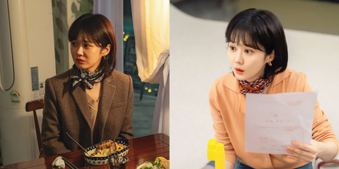這次在《Oh My Baby》中,張娜拉造型最常使用的配件絕對是絲巾,不論是西裝外套還是針織衫的穿搭,都可以利用絲巾增加個人風格,沒想到可以因為一個小小絲巾的不同的打結方式或是綁法而讓整體造型變豐富,而且看起來更減齡!