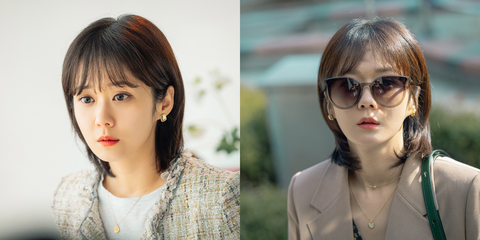 上述提及的單品其實大多都算是簡單、沒有太多浮誇設計的基本款式,這時候就需要一點配件飾品來加強細節,而張娜拉在劇中多以低調中自帶閃光的金色飾品為首選,讓素色簡約的穿搭因為飾品而看起來高級卻不老氣!包括金色圈圈耳飾、不規則壓痕的半弧形耳環或是立體麻花鑲邊的耳針,皆比起銀色的款式更有份量及質感,很適合在工作上有一定資歷的職場女性!