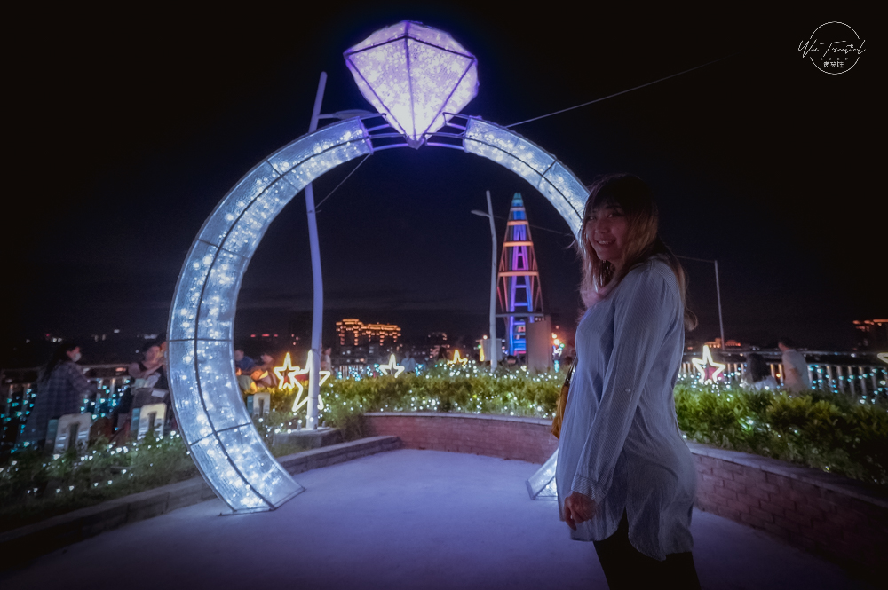 「新月橋幸福光雕展」裝置藝術放入仿真月球直徑超過2公尺超級巨型,在這最適合拍攝的就是超級浪漫的剪影,新月橋幸福光雕展除了月球外還有以「星月,同心攜手」為主題打造全台最大婚戒求婚布景,布景超過一層樓高的鑽戒,四周透出像銀河般的閃爍燈光,從2020年5月20日開始連續32天不間斷,要拍攝限定布景就要衝現在。