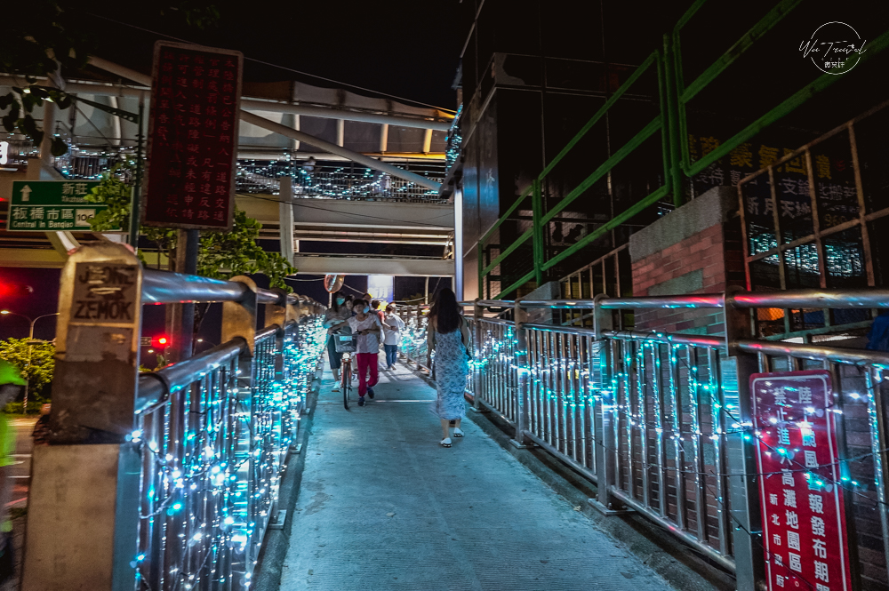 我們來到新月橋很多趟,這次特別在2020年05月20日做紀錄,期待在這浪漫的節日可以一窺「新月橋」專屬節日裝置藝術,要道新月橋可以從新北市板橋435藝文中心前往(此處有無障礙電梯);抑或是從新北市新莊廟街入口都可以到,兩側入口都有浪漫像銀河般的閃爍星光大道點綴,還沒走到新月橋就已經有浪漫氛圍。
