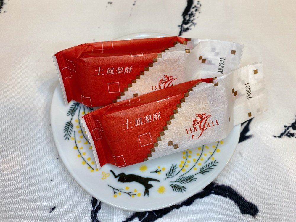 伊莎貝爾的「土鳳梨酥」皮薄餡多,內餡使用本土台農2號土鳳梨,搭配以嚴選紐西蘭奶油製成的香酥外皮,味道酸而不膩並帶著奶香,吃得到天然的鳳梨纖維,口感扎實又帶有層次。