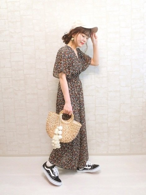 週五:碎花連身裙+VANS