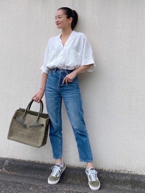 丹寧牛仔褲以工人勞動作為起源,後來延伸為時尚百搭單品,與VANS的精神正好不謀而合。一件合身的牛仔褲可以搭配任何所有款式,露出腳踝肌膚,更顯得腿長,讓比例更修長,是矮個子妞妞們的最佳選擇。顯示出大人品味的白色襯衫,與下半身的隨興風格,營造衝突美感,強調出個人特色。綁上俐落的髮尾,幹練的氛圍瞬間表露無遺。