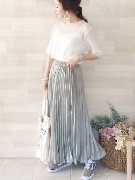 兼具減齡與氣質的飄逸長裙是日系女孩的最愛,縮腰的束口設計展露出穠纖合度的好身材。只要一雙VANS鞋就能避免太過於女孩子氣,搭配令人無法忽視的簡約耳環,時尚又有魅力。選擇百摺設計可帶出慵懶感,其他款式的長裙也呈現出不一樣的風味。利用清、透、薄的顏色輕盈整個夏天。