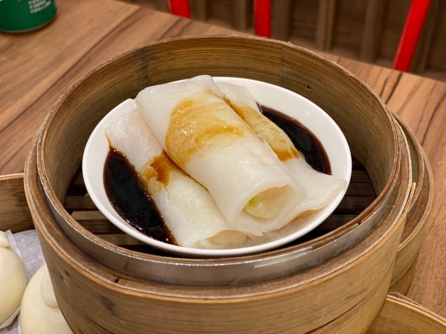 「韭黃鮮蝦粉腸」外衣晶瀅透薄又彈牙,粉腸內包著鮮蝦、活蘿蔔和芹菜等內餡,入口伴隨著淡淡的韭黃香氣,口感層次豐富多元!