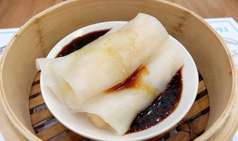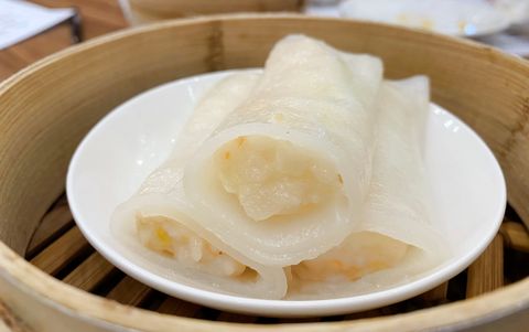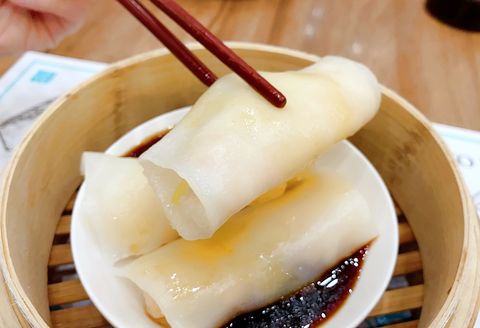 腸粉控保證大愛的「韭黃鮮蝦粉腸 」,擁有晶瑩透薄的彈牙外衣,內餡中包裹著混合鮮蝦、胡蘿蔔、芹菜等多種新鮮食材製成的內餡,口感層次豐富。