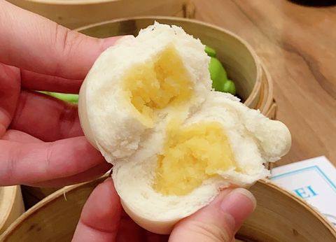 超萌的「奶黃兔寶包」,使用傳統奶黃餡製做,蛋香濃郁,口感紮實。