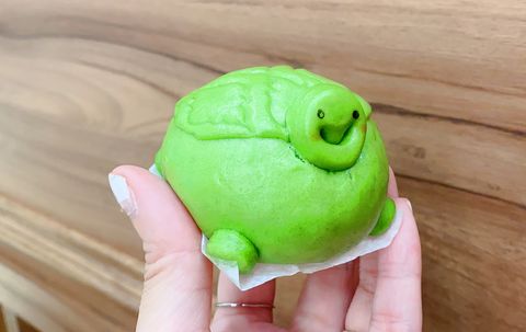 「抹茶紅豆烏龜包」吃的到鬆軟不黏牙的抹茶外皮,內餡搭配上滿滿的紅豆泥,如果妳是紅豆控,這顆烏龜可別錯過!