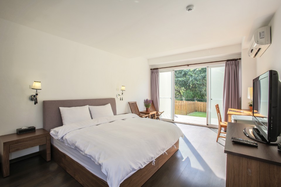 房型部分共有四種,分別是:兩人房西看看、兩人房搖尾巴、兩人房哈哈笑、四人房翻肚子,都是跟寵物的可愛舉動有關呢!每間房型均配有觀景露台、部分房間並有獨立專屬草皮,帶著小狗與貓咪到戶外茵茵草地上親近田中綠意。