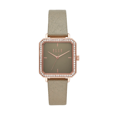 ELLE,Clichy 典雅方形鑲鑽灰色皮革手錶 (30x31mm),NT.3,980。