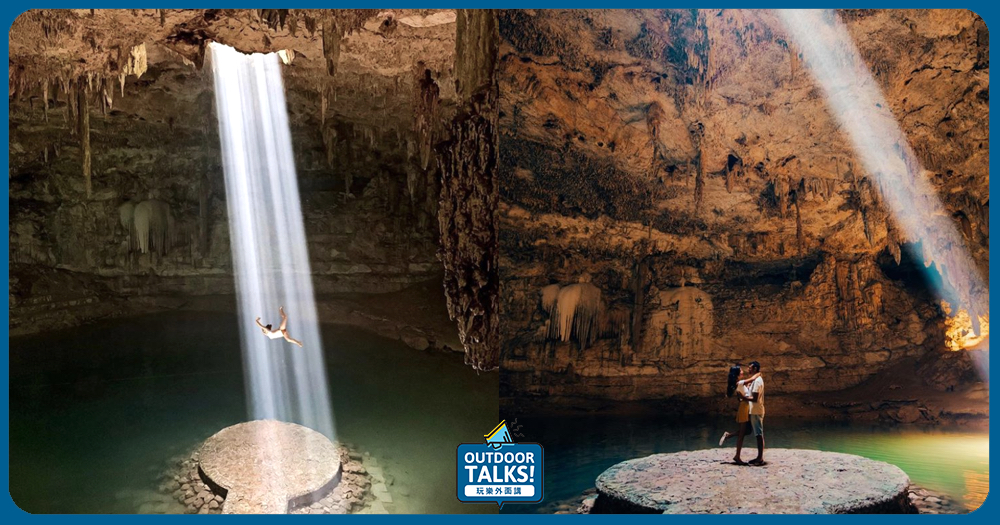 墨西哥古馬雅文化吸引許多遊客前往朝聖,旅遊勝地坎昆更是許多歐美人士的度假首選,近一年才被發現的一個天然的地下洞穴,特殊的景觀搭配陽光照射出一道光,氣氛既神秘又詭異。