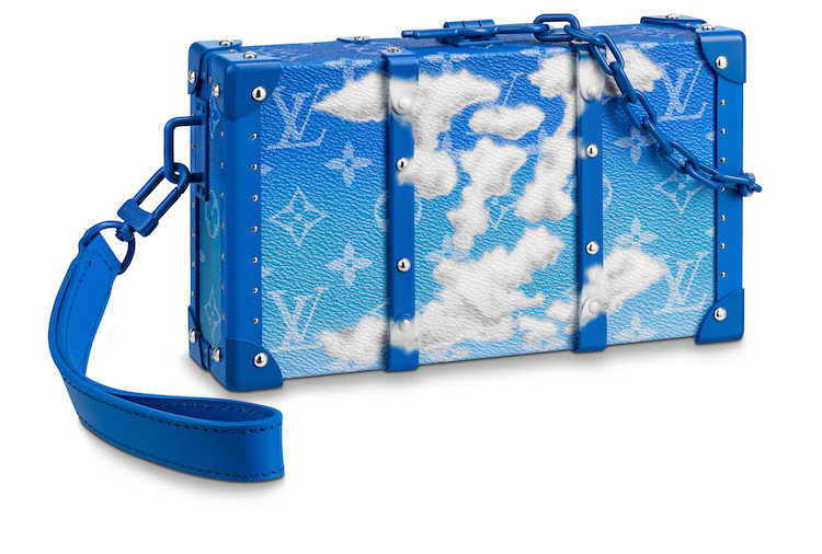旅行是 Louis Vuitton 品牌的核心,因此在許多配件的設計上,皆離不開行李箱這個品牌的起源,這次 Vrgil Abloh 將品牌的方形行李箱縮小成包款,並以延續秀上的藍天白雲,讓這款小包背在身上,立刻成為穿搭亮點!