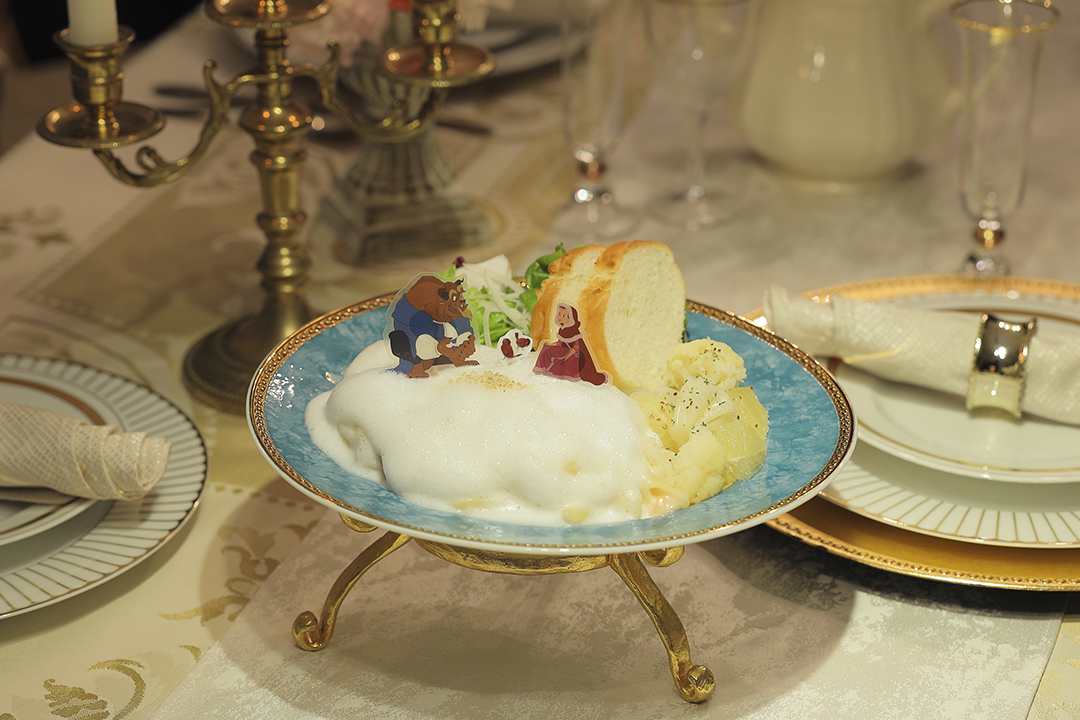 咖喱飯是必別餐點,以貝兒的黃色公主裙和野獸的藍色西裝作為主調,很有心思呢~