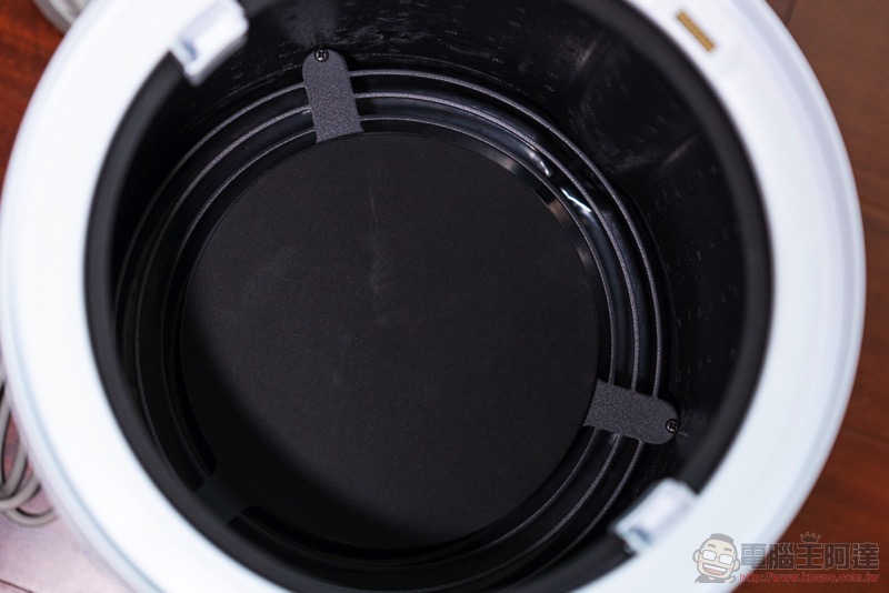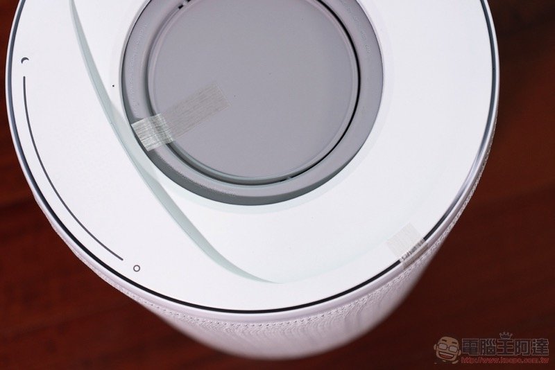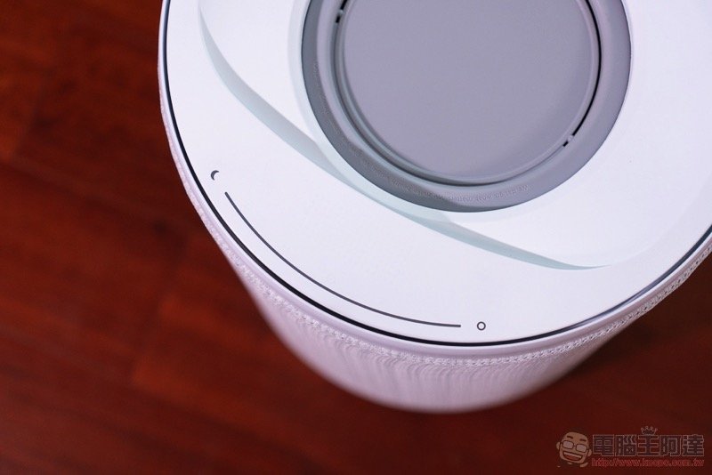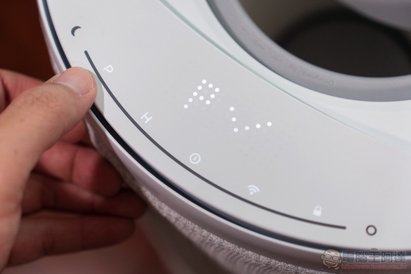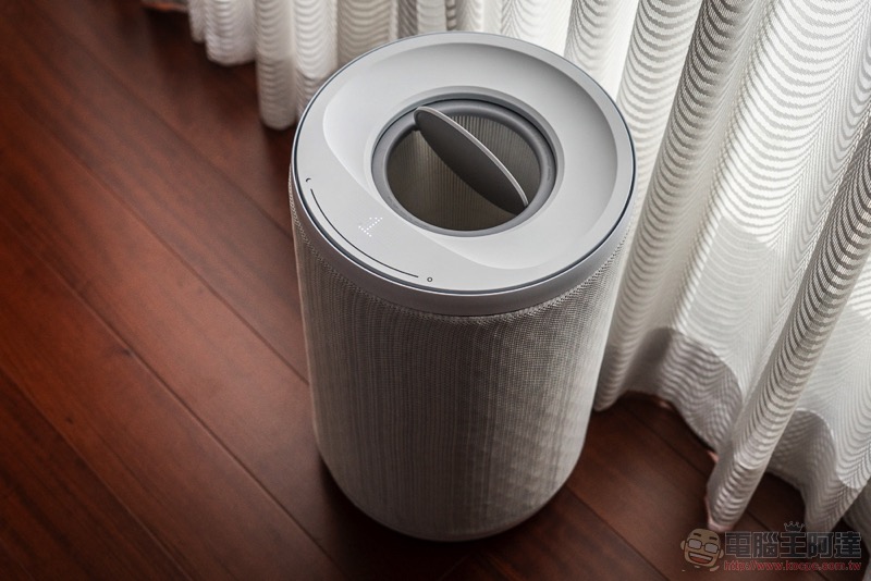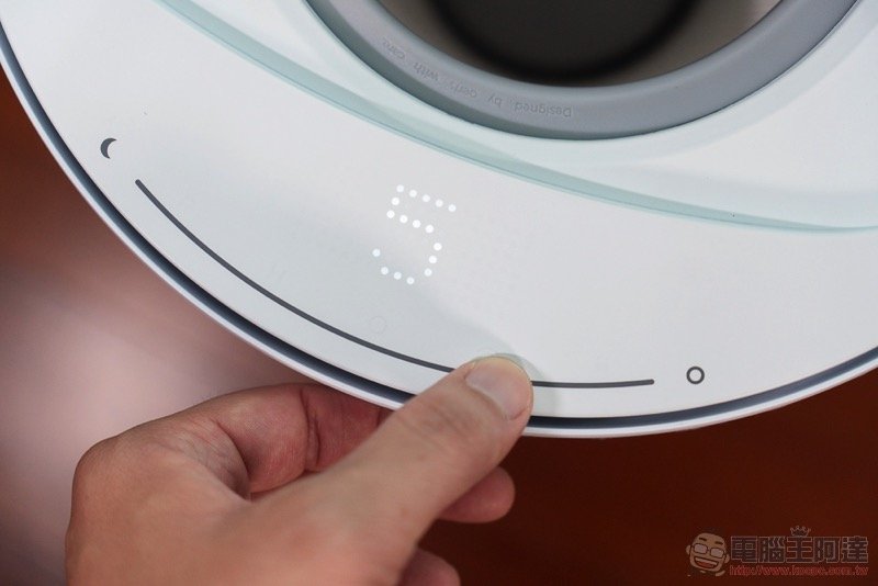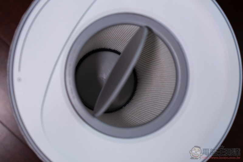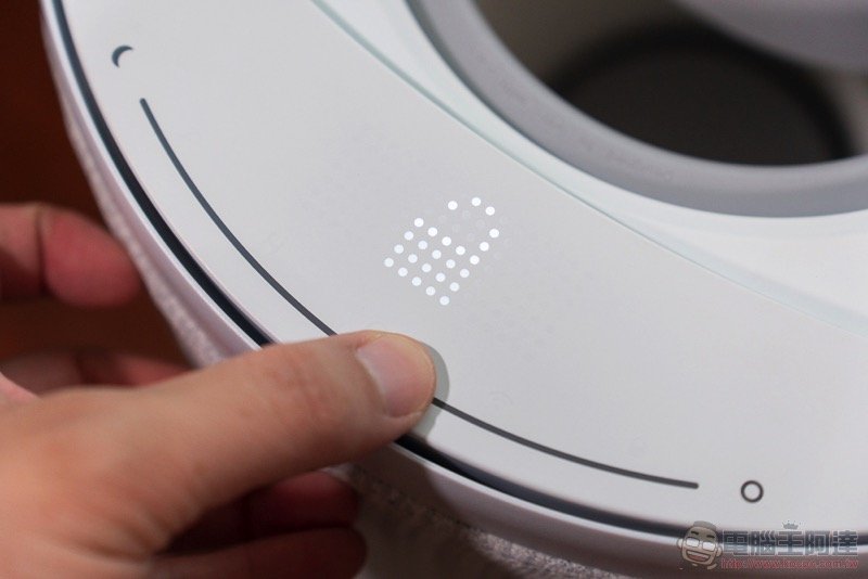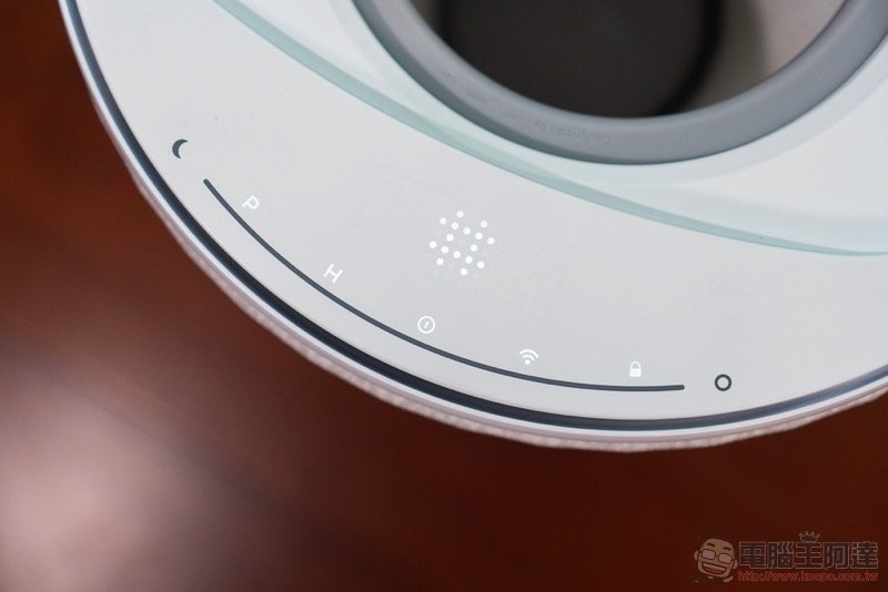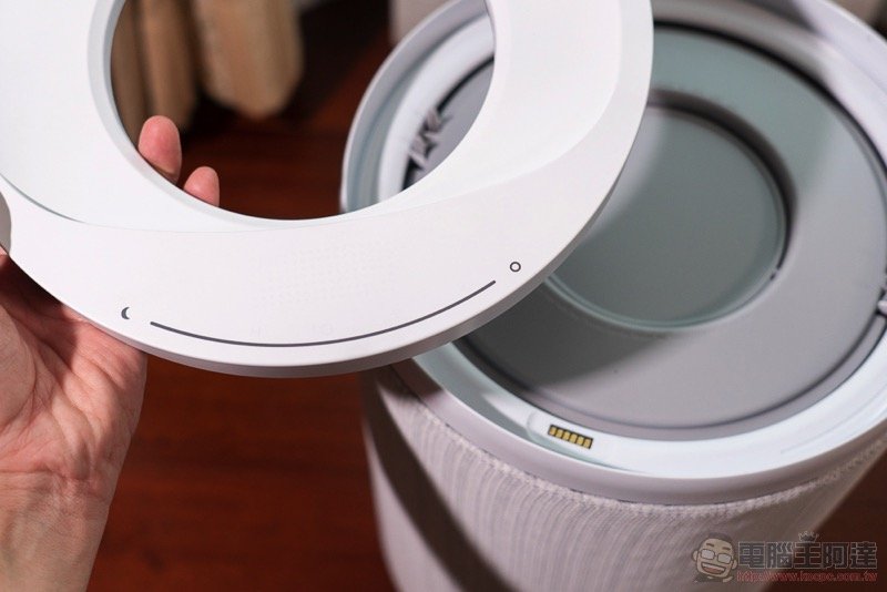 說到濾網,我們也簡單教大家怎麼怎麼進行拆解。拆解的第一步,也是小編認為 Aeris aair lite 最驚艷的設計重點之一,就是它採用了磁吸固定的圓形觸控上蓋(超酷),可以輕鬆拆卸與裝回,會瞬間恢復操控功能與狀態顯示: