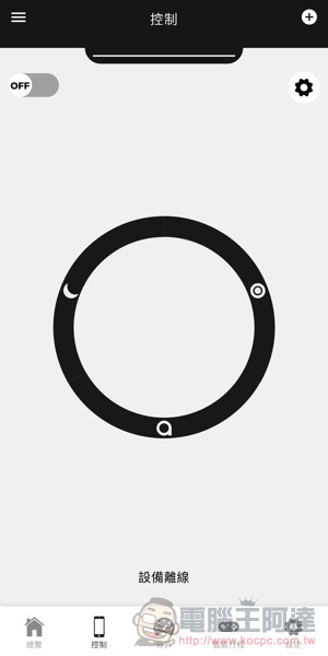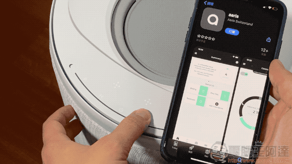 雖說 Aeris 空氣清淨機面板上已經可以操控大部分的功能,不過像是空氣品質監測的即時與歷史資料乃至於智慧排程的功能,還是會需要用到 App 來進行檢視與設定操控 -- 設定方式蠻簡單的,先下載好 Aeris app ,接著只要長按面板上的 Wi-Fi 連線按鈕,便會進入下圖的這個連線待機狀態: