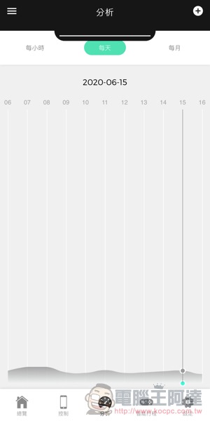 完成連接後,回家前想先請 Aeris aair lite 好好過濾一下家中的室內空氣迎接自己,只要簡單透過手機遙控即可進行控制,也可以看到時/天/月為週期的空氣品質趨勢圖:
