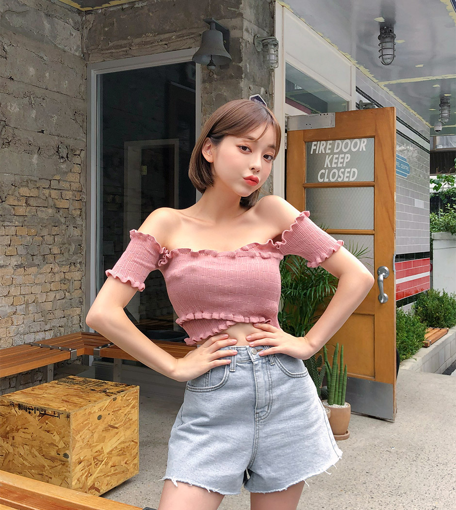 長方型(直筒型)身材的女孩通常都是比較骨感一點的體型,亞洲女性大多是以這樣的身材為主,瘦歸瘦但身材曲線卻不明顯,可以選擇凸顯腰身的牛仔短褲來製造腰細翹臀的假象,所以會推薦高腰 A 字牛仔短褲的款式作為下身單品,然後再搭配具有放大效果的設計感上衣,將長方型瞬間穿成凹凸有致!