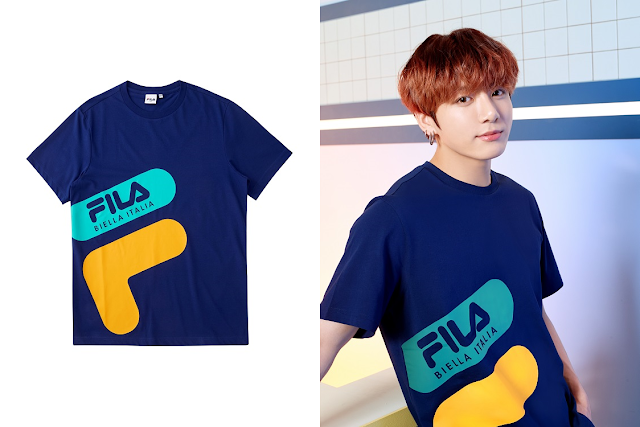 黃金忙內 Jung Kook 穿的這款亮藍色 FILA 短 T 設計感十足,繽紛的顏色設計很有青春風格,再搭配一件牛仔短褲,這樣的穿搭真的是舒適又兼具時尚感啊!