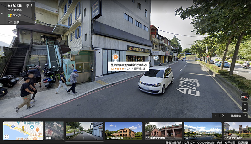 不知道大家最近使用 Google Maps 網頁版的時候,有沒有發現 Street View 街景功能有了一些變化(至少小編用的有)。簡而言之,相對於以往只有在 Google 街景的道路上標註路名的顯示方式,最近這個十分受歡迎的地圖服務的網頁版本,已經開始導入將圖資的地點「定位」在街景之中的功能。所以未來也許你可以直接在街景之中透過景點 / 店名的標示來找到方向了。