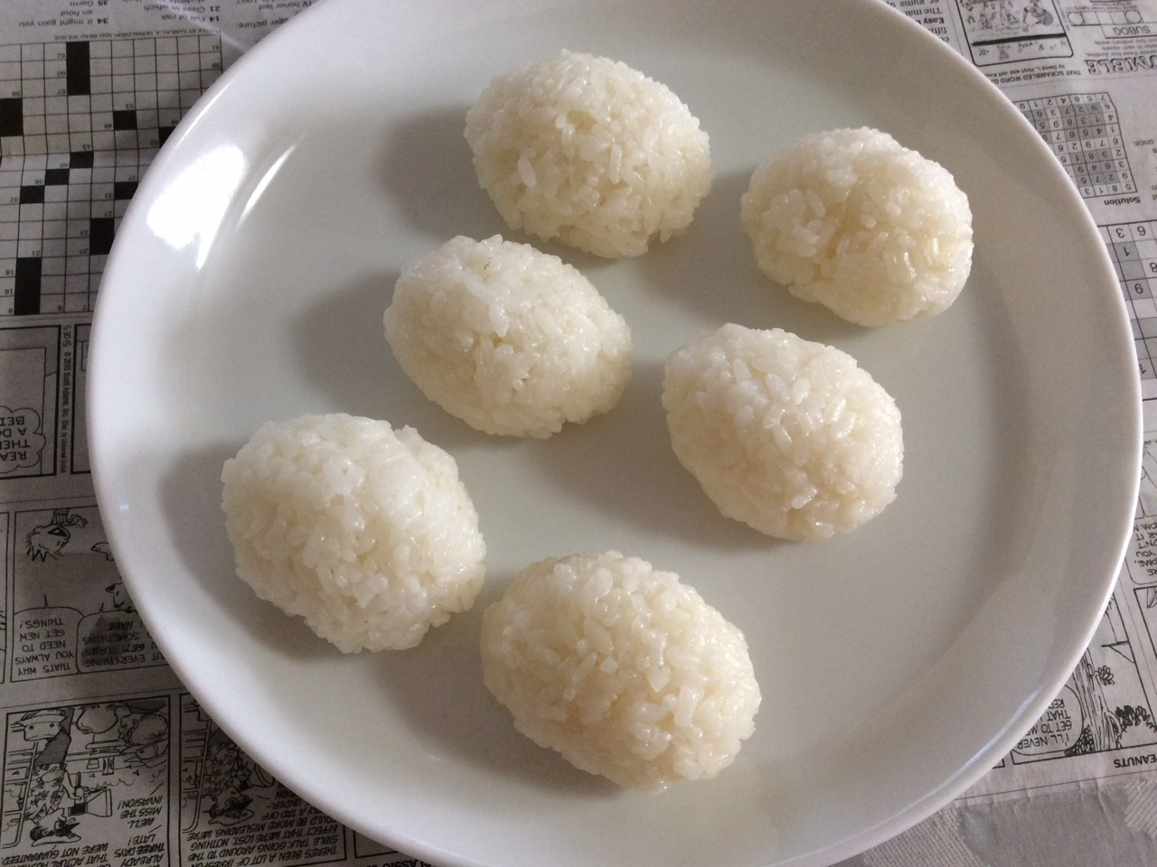 ▼ 首先,用保鮮紙把醋飯握成一口大小的橢圓形。