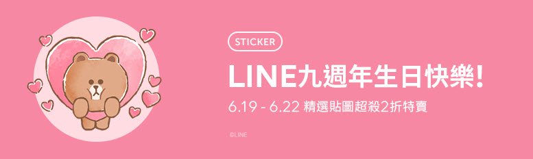 「LINE9週年生日快樂!BROWN&FRIENDS 貼圖下殺2折」活動期間為6月19日 10:00 - 6月22日 23:59,10款貼圖通通只要2折12元,而因優惠不重複原則,此活動中六組動態貼圖將不列入LINE STORE全館回饋活動。