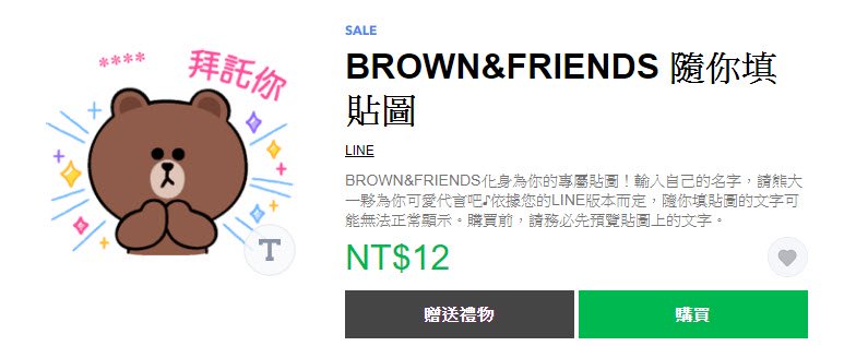 「BROWN&FRIENDS 隨你填貼圖」,可讓BROWN&FRIENDS化身為你的專屬貼圖,購買前,請務必先預覽貼圖上的文字。