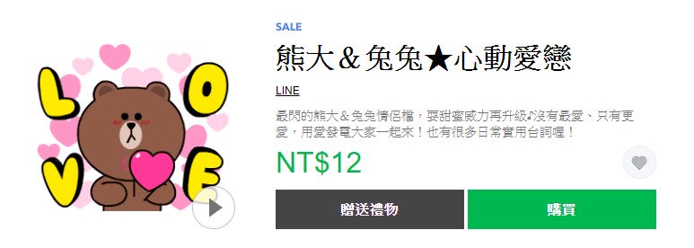 10款BROWN&FRIENDS 貼圖包含「熊大兔兔情侶檔愛你到永遠∞」可動貼圖,熊大&兔兔的愛只有更濃,各種愛心滿場飛。