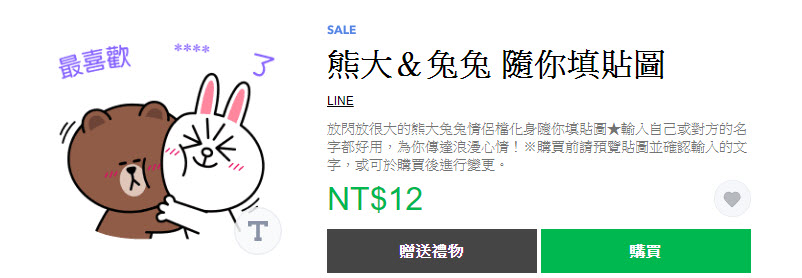 「熊大&兔兔 隨你填貼圖」,放閃放很大的熊大兔兔情侶檔化身隨你填貼圖,購買前請預覽貼圖並確認輸入的文字,或可於購買後進行變更。