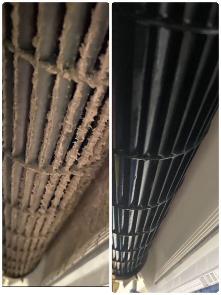 你看看還沒清洗的冷氣內部[左圖]和清洗沒有灰塵殘留的乾淨[右圖],不僅幫你延長冷氣的壽命,也讓冷氣吹起來更加涼爽很多,家中如果有容易過敏的人,也可以減少發作的情形。