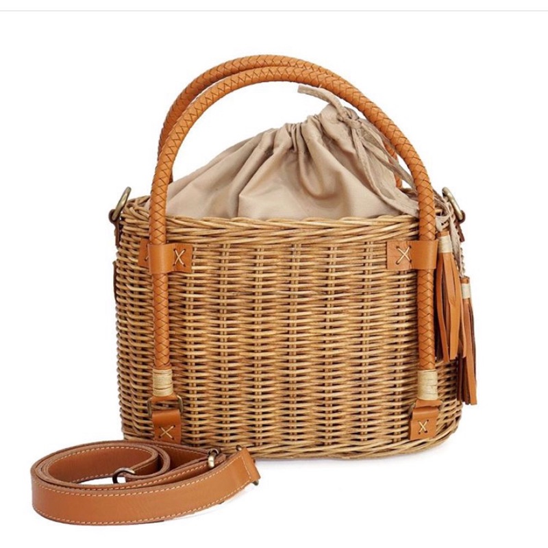 藤編水桶包也是藤編包中的一大經典款式,結合異材質混合的皮革肩背帶,能塑造出一種與眾不同的優雅感覺,弱再搭配上一件仙氣十足的度假洋裝,那絕對會讓你展現十足的女神感!