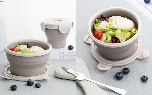 有些上班族會先在家裡自己做好便當,帶到公司後就可以當成午餐,而這款矽膠折疊可伸縮餐盒就很適合拿來裝便當,因為它很好清洗,只要用洗碗精稍微沖洗過就不會油膩,而且洗好之後還可以折疊起來放進包包哦!