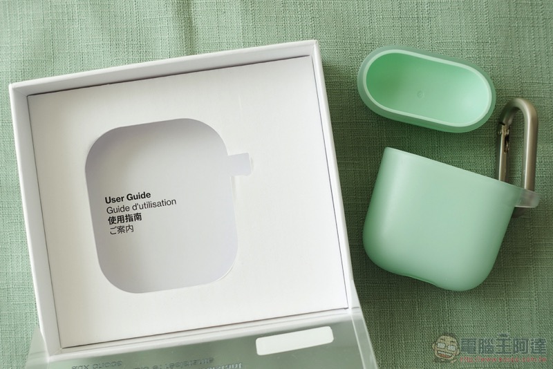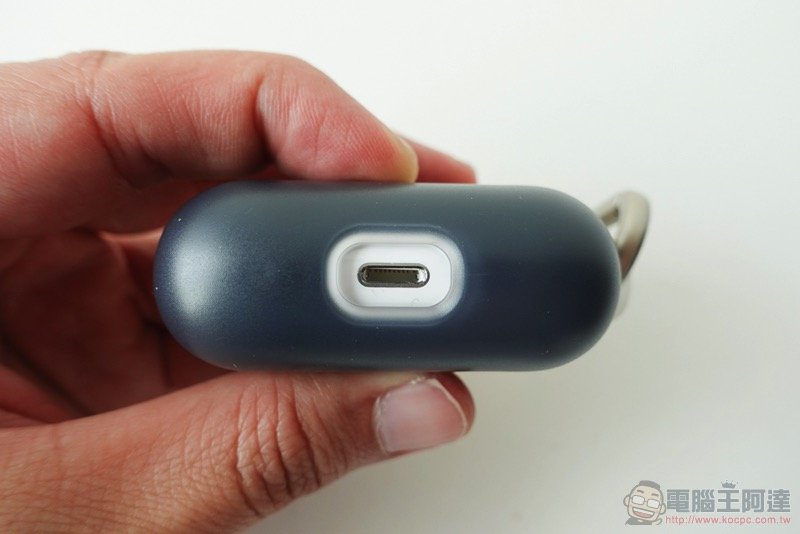 採用上下兩件式設計的犀牛盾 AirPods 保護殼,除了本身尺寸足夠服貼再加上內層是稍軟的材質,所以安裝起來相當容易(用力逼緊就好)但拆卸就需要一些技巧 -- 上圖說明書提供的技巧還不錯,教你插上充電線直接頂出。