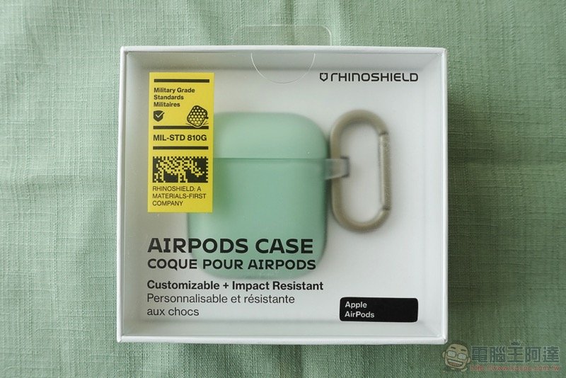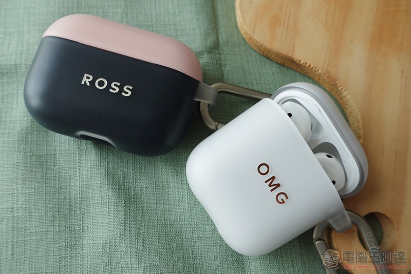 這次我們電腦王阿達團隊也搶在預購出貨前,簡單動手玩試用犀牛盾的 AirPods 保護殼,而且還是 AirPods 與 AirPods Pro 全色系 -- 也有客製刻字的示範版本(有金色與銀色字樣可選,不過只能支援英文字),正式開賣之後犀牛盾接著也會有圖樣設計的版本可以選購。