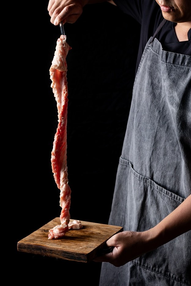 除了拼盤之外,這個滿足視覺和味覺的「65公分豬五花」更是來店必點!將豬五花烤至兩面脆熟,再剪至可入口大小,不只保留豬肉的油香口感,還能多擁有香脆的表皮,搭配生菜、泡菜與蒜頭,多重層次大大升級。