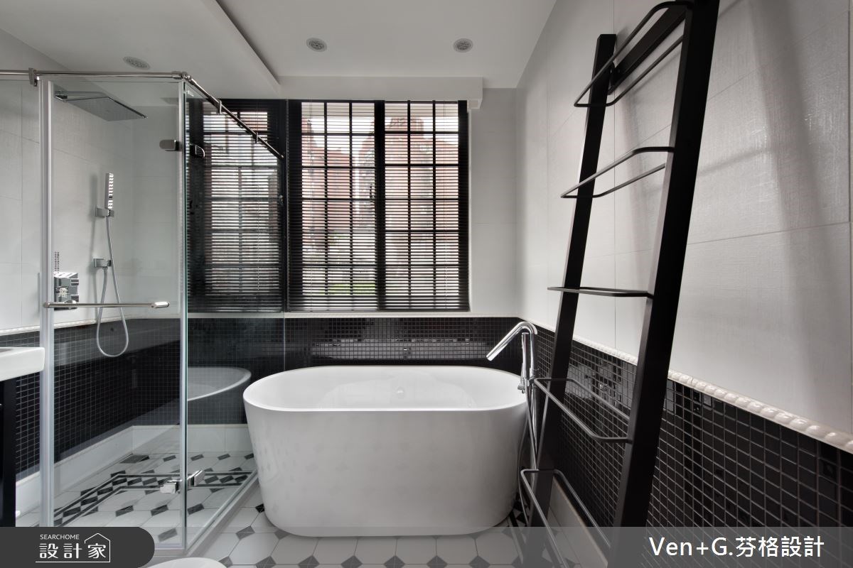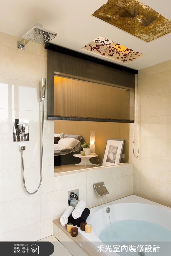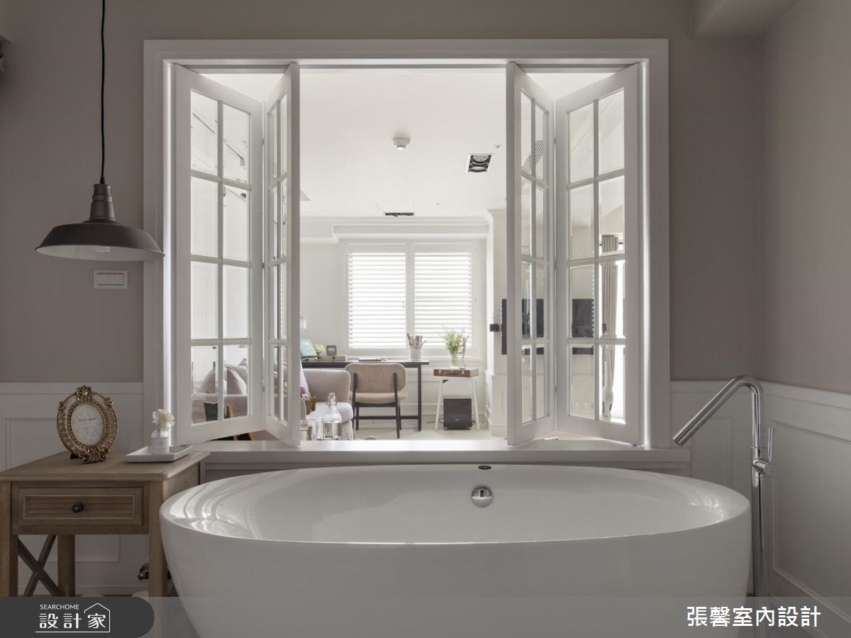 常見於小坪數住宅的開放式格局設計手法,同樣適用於衛浴空間。把浴缸機能定義為乾區,安排於臥室內,以不犧牲臥房空間、不放大衛浴坪數下帶來泡澡機能。或者,加大衛浴格局並以通透玻璃的方式取代實牆,減少房內的侷促感。