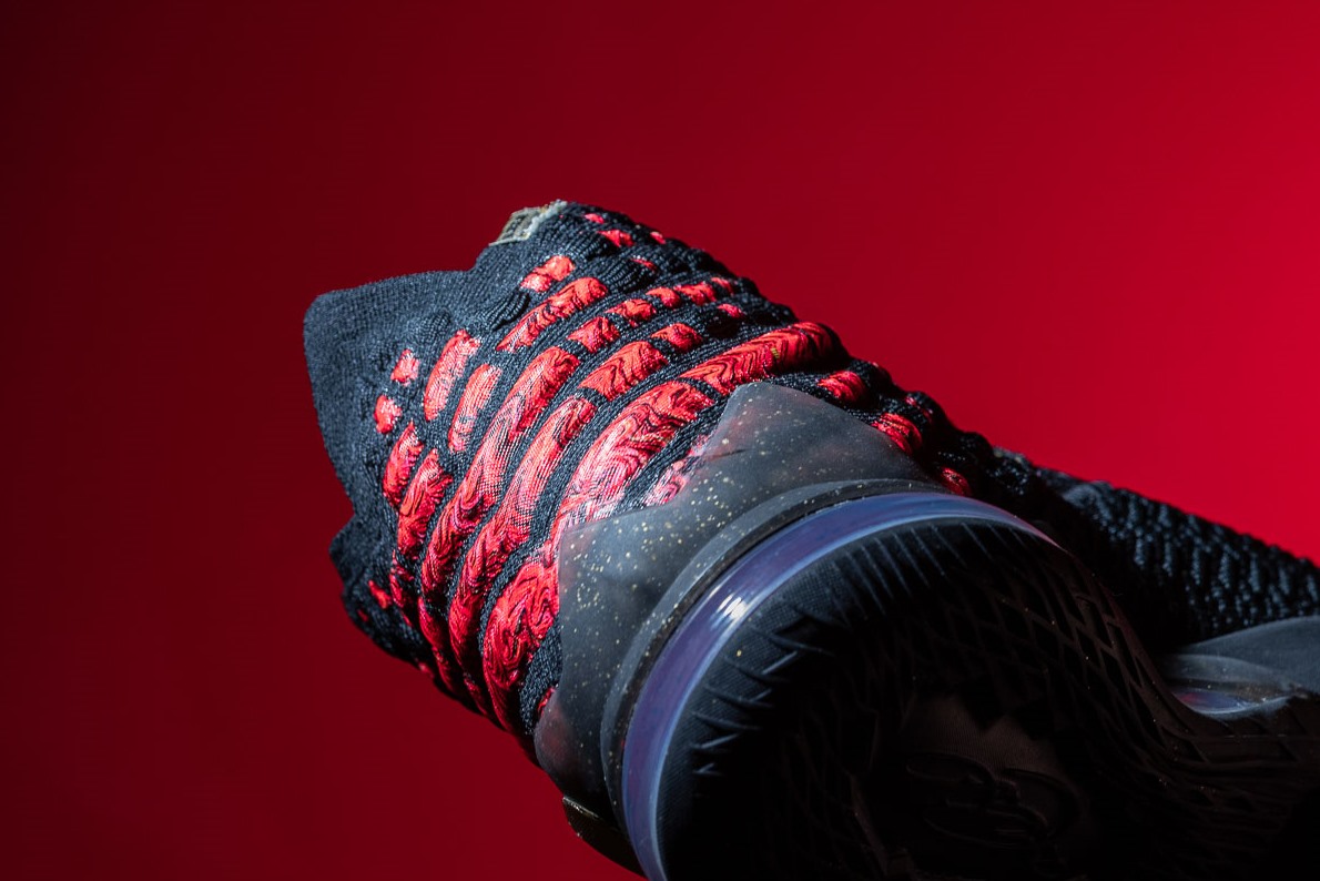 Nike 設計團隊為 LeBron 17 鞋舌設定了能依照配色主題乘載專屬細節的空間,是以 ‘Courage’ 使用絲綢材質為底,並以細緻電繡勾勒出整雙鞋的靈魂,該片鞋舌是臺灣仁美商標公司所生產,其內部人員表示「看到成品鞋照片都要哭了…真的超難做的…」來自我們腳下這片土地的音樂創作和織造技術聯手獻上 ‘Courage’,對編輯來說這位訪客很台很迷人。