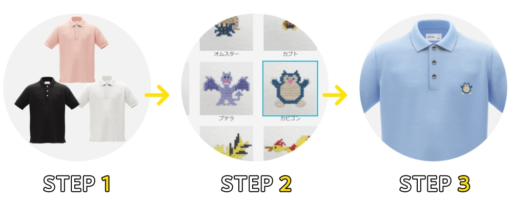 步驟非常簡單,選擇POLO衫顏色、刺繡圖案、尺寸,專屬自己的寶可夢上衣就此完成!圖片來源