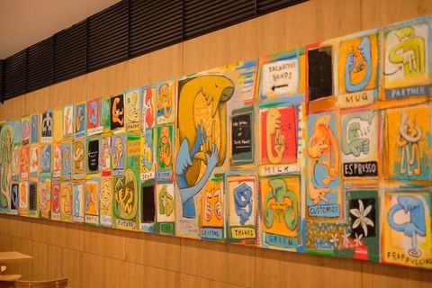 国立門市牆上的這些藝術品是出自日本插畫家門秀彦之手,他的爸媽也是聾啞人士,因此門秀彦從小就懂得用畫畫來表達自己的感受,這些可愛的手語動物畫作在星巴克的手語門市顯得格外溫馨。