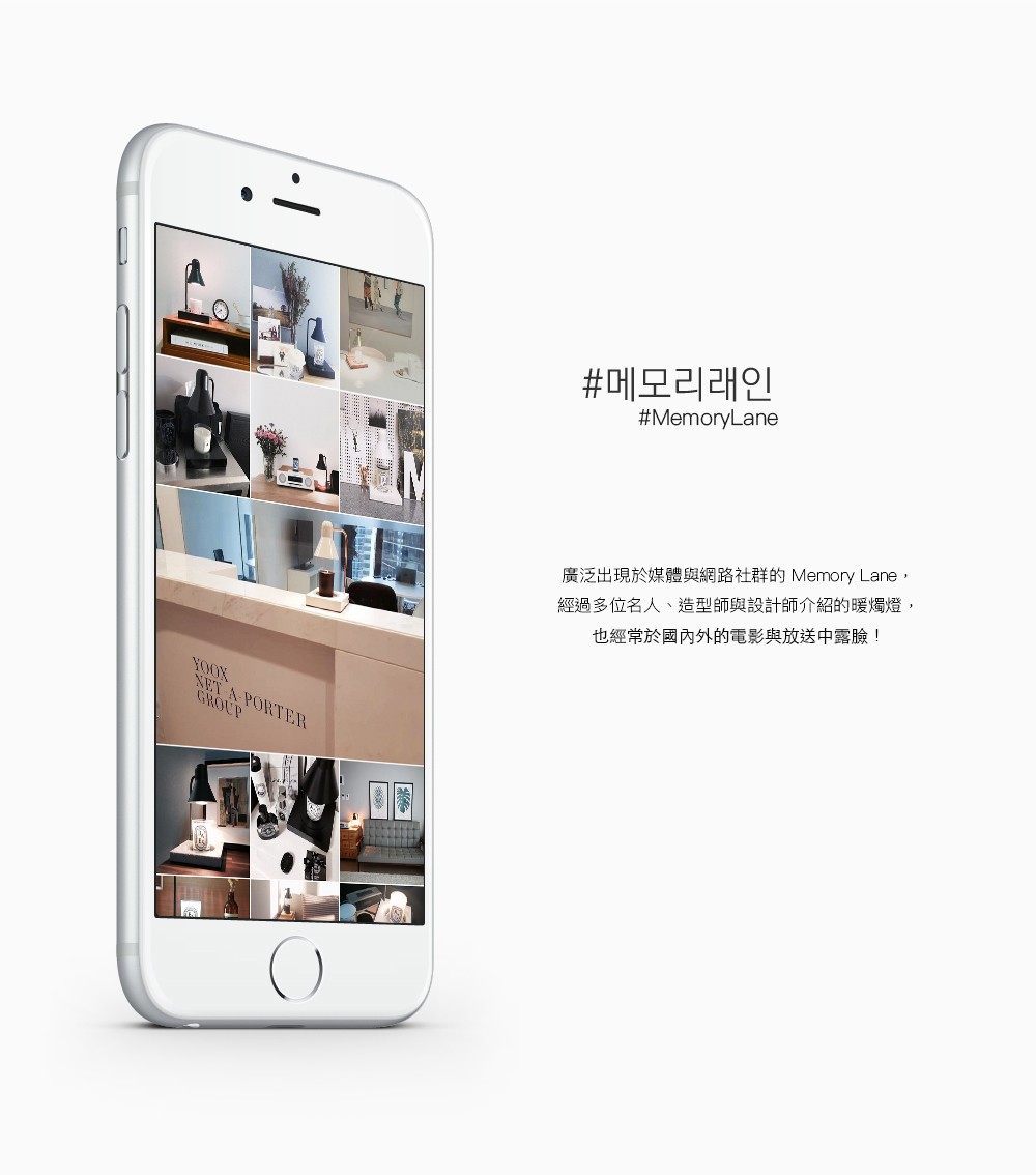 Memory Lane 以實用、和諧及簡約的理念打造暖燭燈,從最初設計到生產完工,皆 100% 國內製作,以獨家設計替空間注入一道時髦新潮流,具都會居家美學,2014 年甫推出,即獲得廣大迴響,累計銷量突破三萬支,更於無數時裝雜誌上亮相,成為最亮眼家飾。