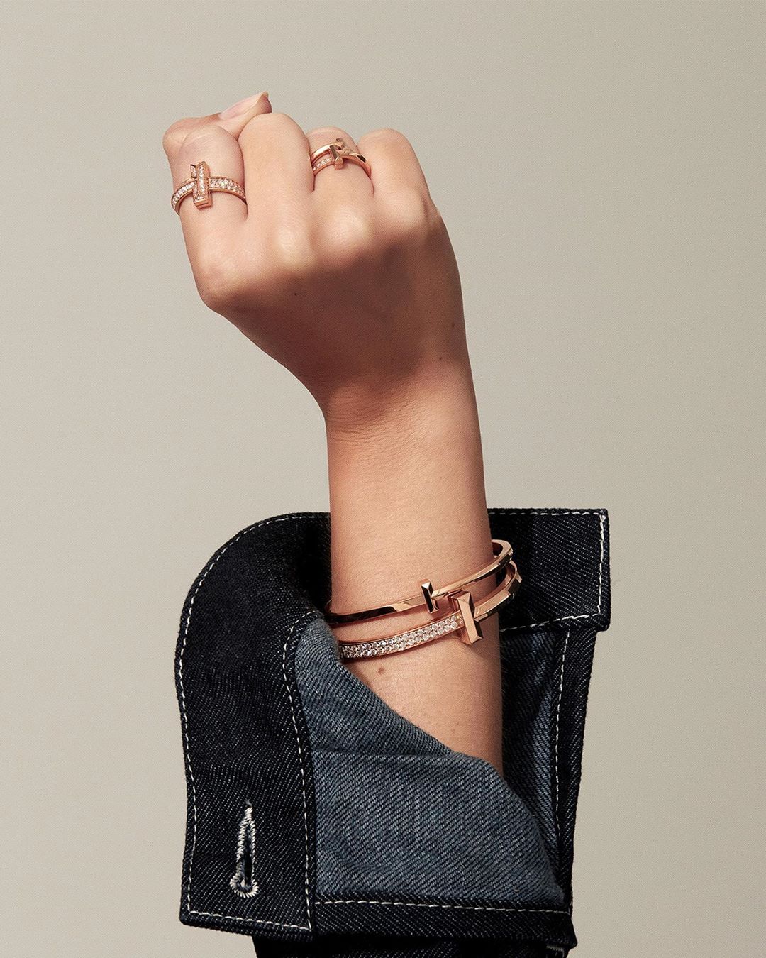 女孩們的夢幻婚戒品牌Tiffany & Co.除了鑽石戒指之外,今年新推出的T1系列也推薦給比較有預算的妞妞們購入。今年春天先推出玫瑰金款,之後還會有黃金和白金的材質,雖然價格偏高,但很實戴,每天戴或是混搭其他品牌的飾品都可以。不鑲鑽的玫瑰金戒指價格是30,000,手環則是113,000。