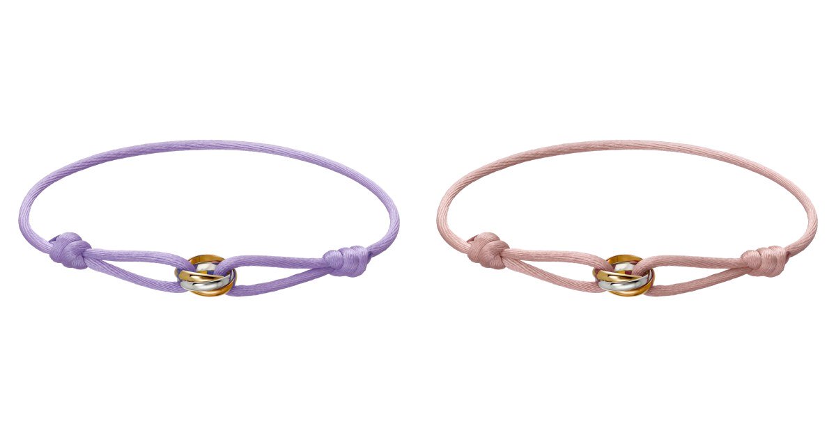 卡地亞除了旗下最有名的LOVE系列和釘子系列之外,事實上Trinity彩色斯繩手環價格更親民,這款手環中間的環扣式利用3種材質打造的3環戒指,是品牌在1924年打造,白金代表友情、黃金代表親情、玫瑰金則代表愛情,另外再搭配各種不同顏色的絲繩,不管要撞色戴還是單戴都很好看!今年夏天還推出石英粉、薰衣草紫、嬰兒藍等色,價格17,700就能帶回家,卡地亞的飾品能有這個價格真的很驚人!