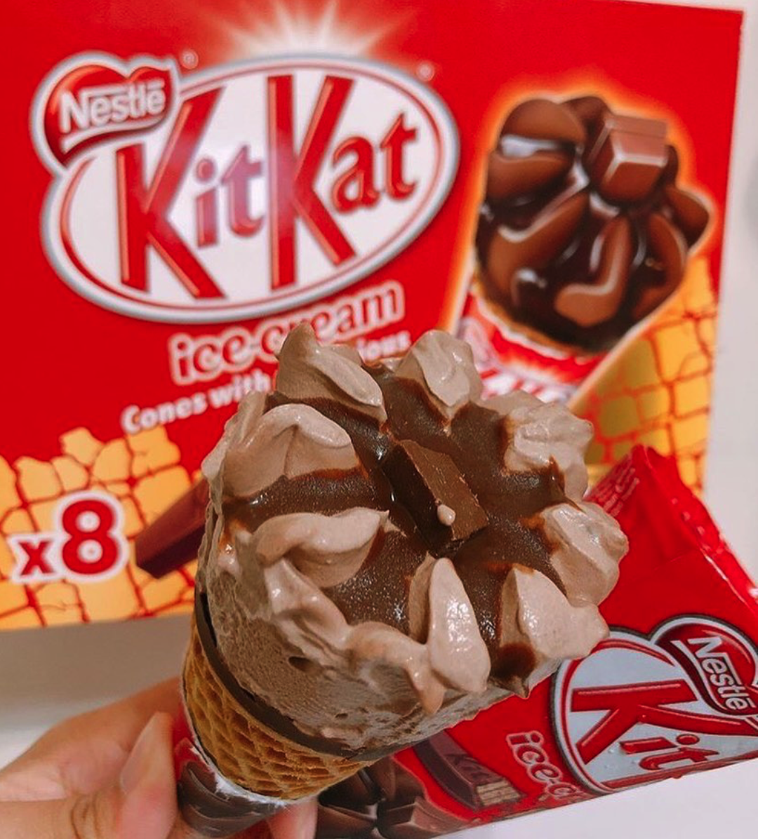KitKat是很多女生喜愛的零食,而這一款更在台灣和香港有賣呢!KitKat巧克力旋風甜筒,由香濃巧克力冰淇淋搭配巧克力醬,裡面還有一整條經典口味的KitKat,絕對是巧克力控的最愛。
