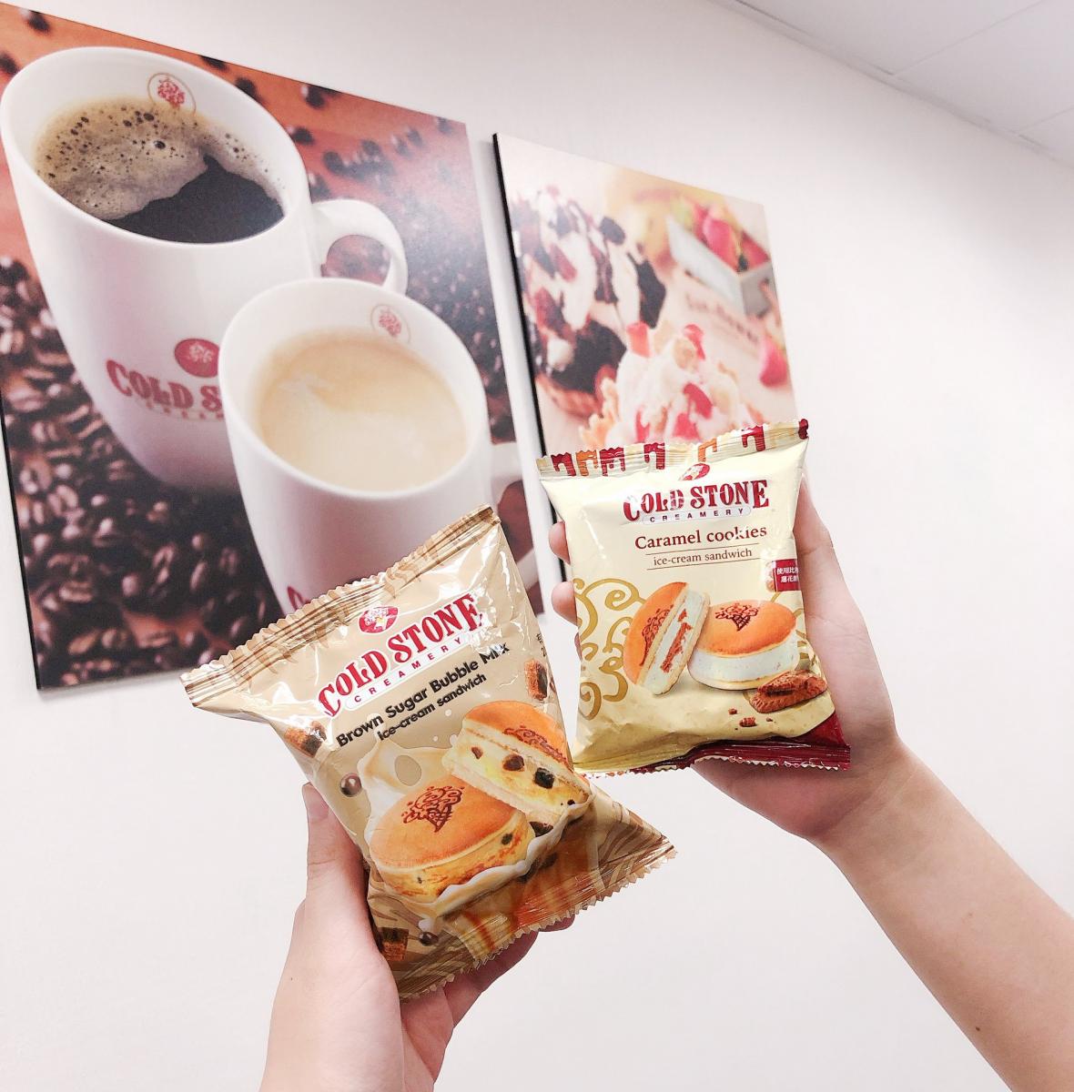 酷聖石COLDSTONE所推出的冰銅燒,顧名思義就是有點類似銅鑼燒的做法,中間夾著厚厚的冰淇淋,由於推出了黑糖珍奶口味更與LOTUS合作推出焦糖薄脆餅的聯名款,因此成功的引起網友們的關注,是相當具有話題性的冰品之一,也認為價格相當合理。