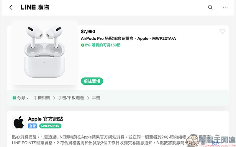 【LINE 購物 AirPods Pro 購買頁面:點我前往】