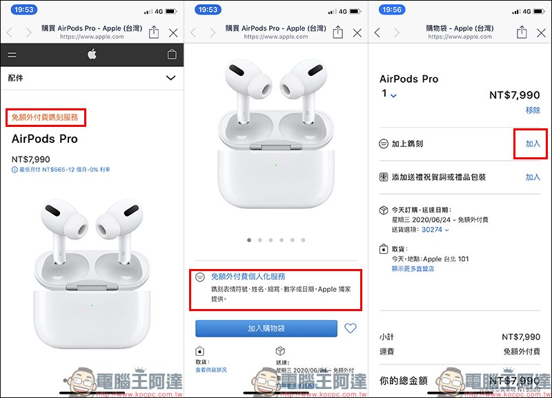 目前 Apple 官網提供購買 AirPods 、 iPad 的消費者可以在訂購商品時選擇是否要加上鐳射鐫刻內容,可選擇表情符號或自行輸入文字: